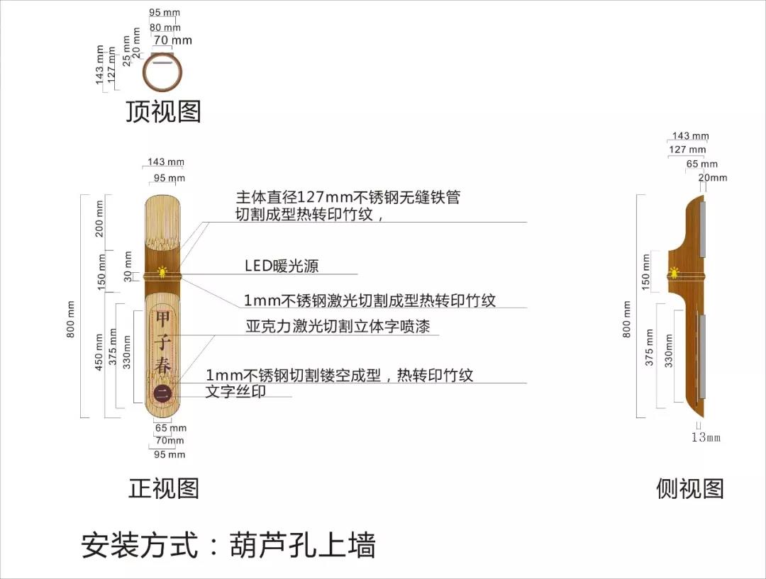 科室牌设计图是由客户方提供,这块科室牌工艺上是比较复杂的。首先前期绘制工艺尺寸图,在工艺上总工办技术人员经过严格的讨论之后,决定主体用不锈钢热转印竹纹。为了达到逼真的效果,在竹节的尺寸和用材上也调整过多次。文字内容,采用两种工艺。立体字与丝网印刷。最终呈现出客户满意的作品。